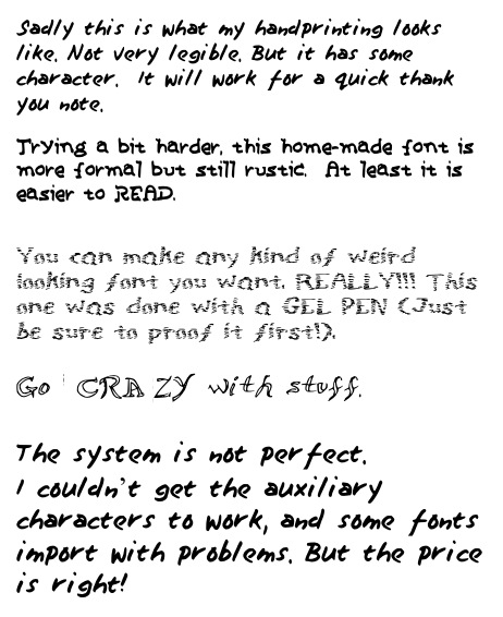 Back in the 1990s there used to be computer magazine ads for this. The ads included spaces for you to hand-write various letters and numbers. Anybody remember that? Mail it in and they mail you back a font.